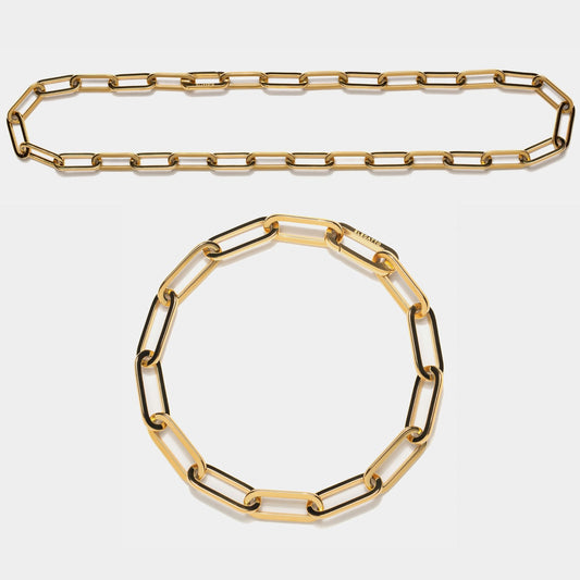 Crafted from 18k gold plated stainless steel, our Paperclip Bundle features rectangular links and discrete...