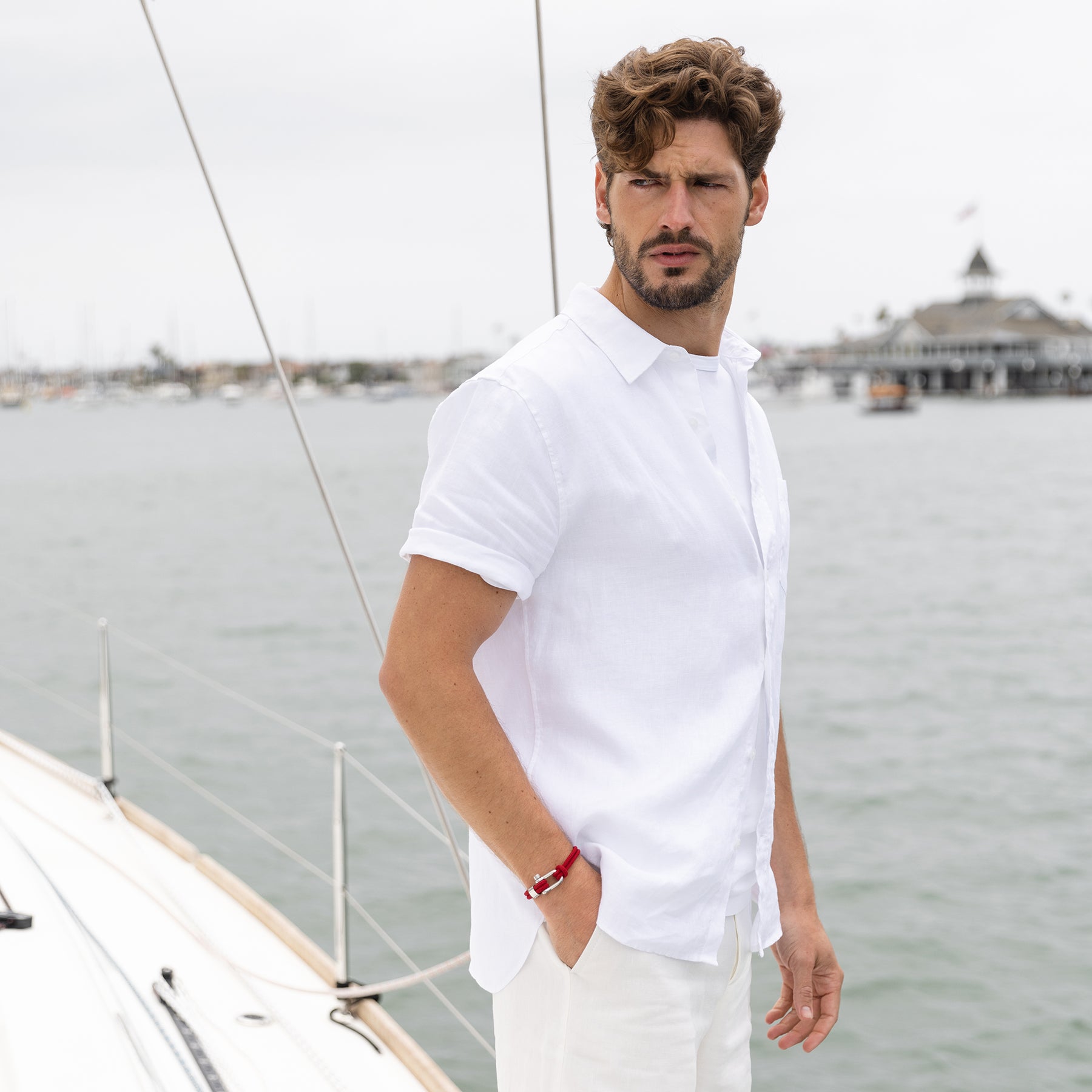 Alchor Platinum Red bracelet is an exclusive Elegatto bracelet constructed from hard-wearing and fade-resistant nylon marine cord, with Elegatto's classic silver-plated shackle closure, the red double strand is knotted around the polished hardware.