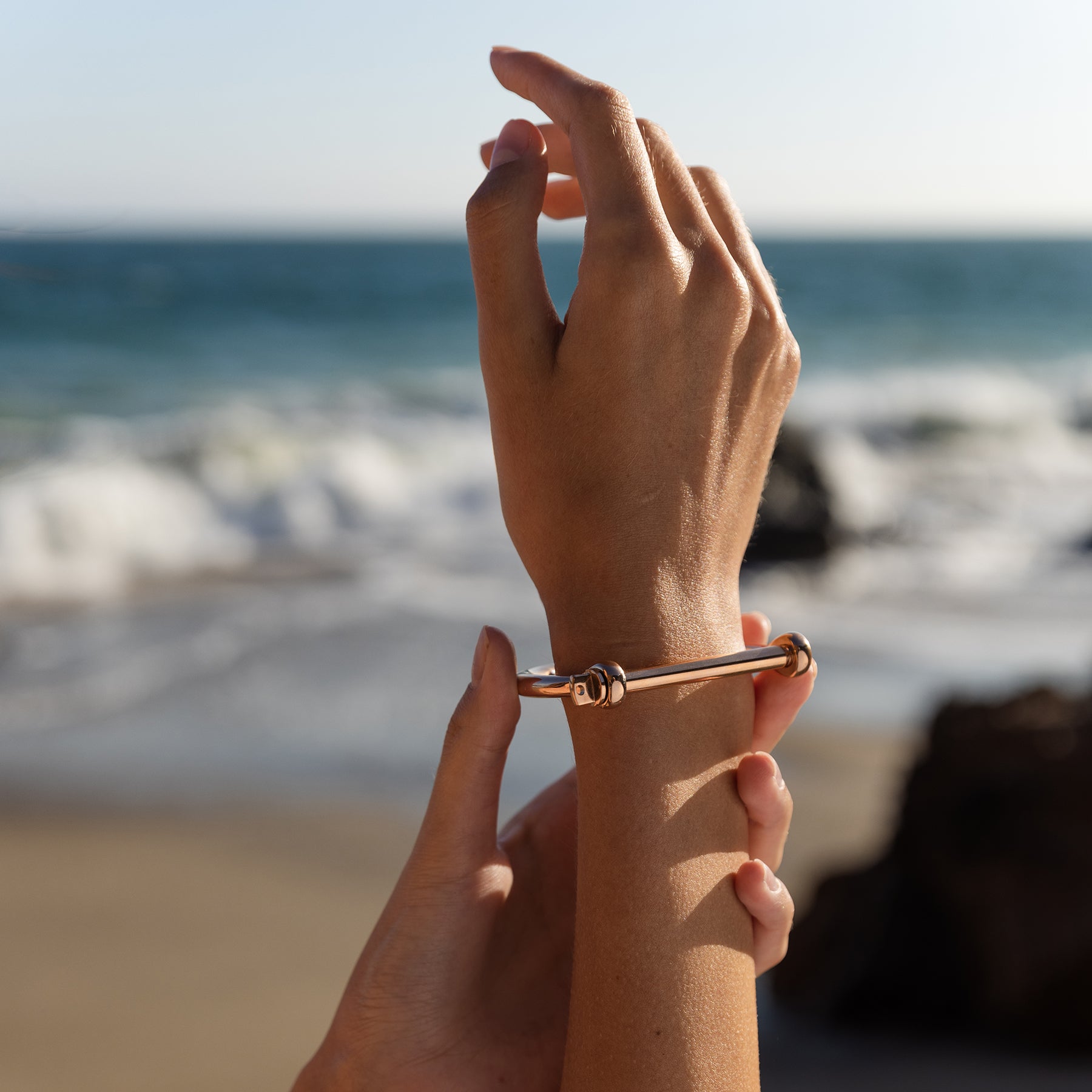 Bangle Rose Gold is an exclusive Elegatto bracelet crafted from 316L stainless steel and polished rose gold. This bracelet wraps smoothly around the wrist. You can be confident about its strength and resilience.