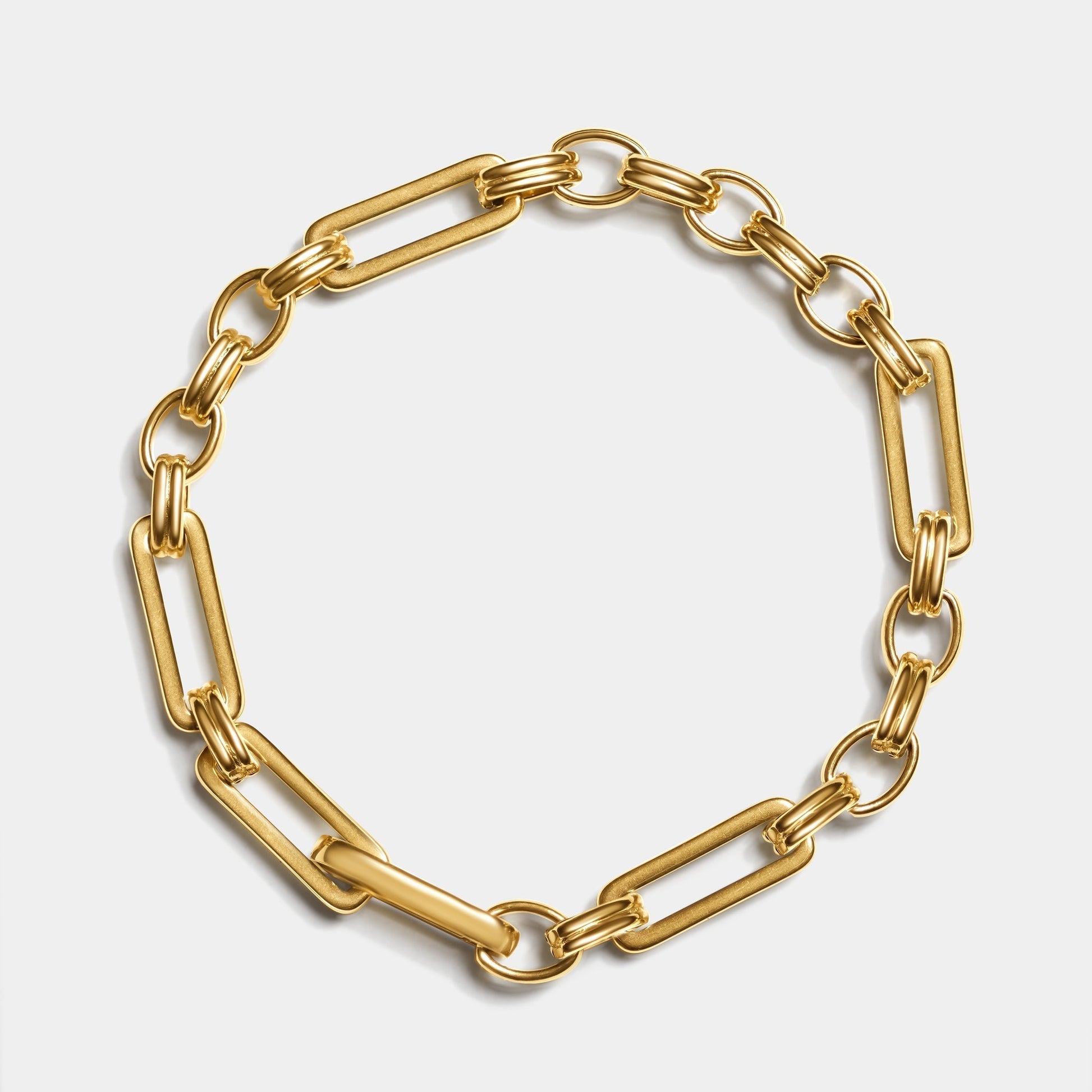 Crafted from 18k gold plated stainless steel, our Catena Bracelet Gold keeps things casual making it an easy addition to your wrist on its own or as a stack. Features rectangular links and a discrete hinge lobster clasp designed right into one of the links. This unique hinge clasp allows for easy application and a seamless look. This timeless chain bracelet is the perfect addition to your collection that will definitely elevate your style and make you stand out.