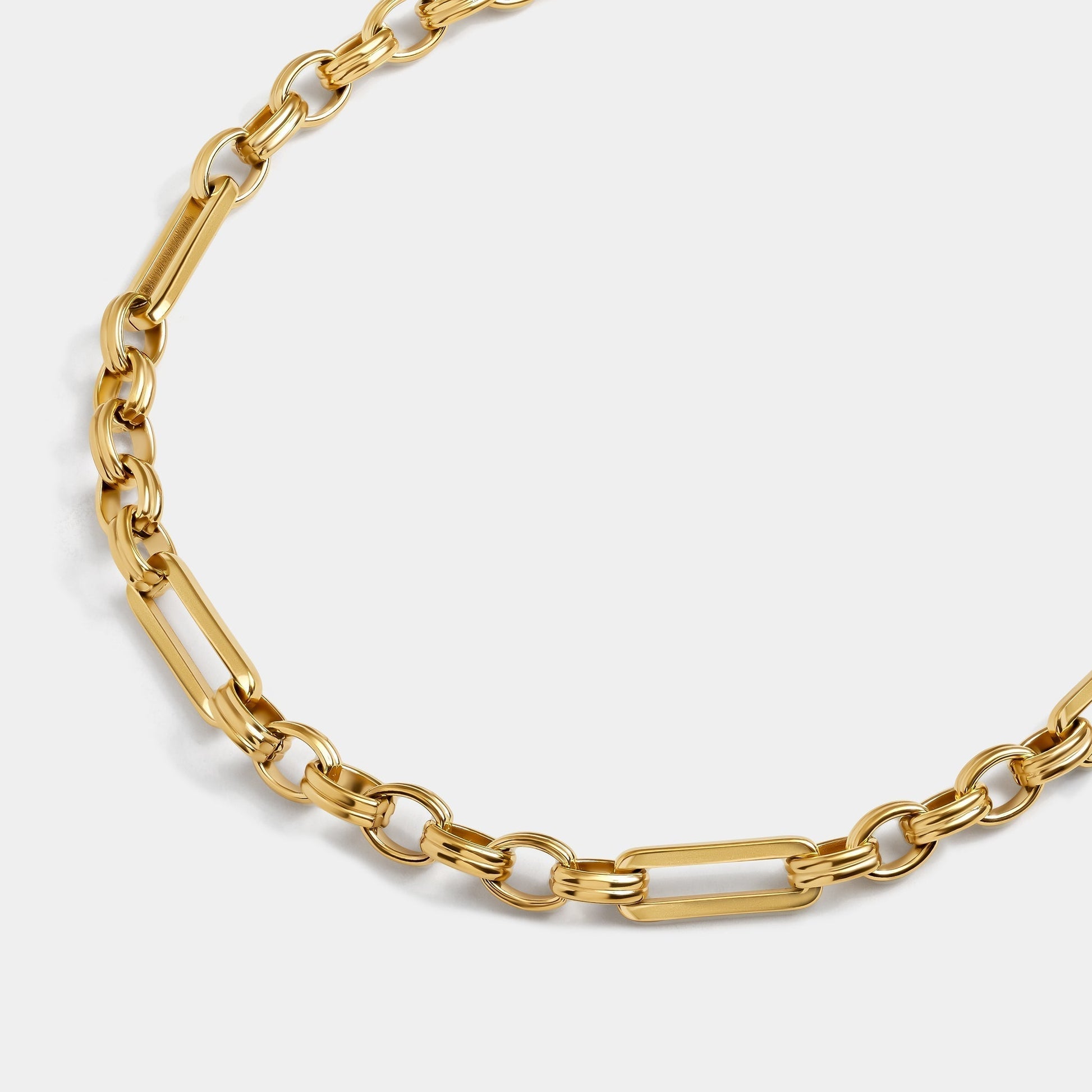 Crafted from 18k gold plated stainless steel, our Women's Catena Necklace Gold keeps things casual making it an easy addition to your wardrobe. Features rectangular links and a discrete hinge lobster clasp designed right into one of the links. This unique hinge clasp allows for easy application and a seamless look. This timeless chain necklace is the perfect addition to your collection that will definitely elevate your style and make you stand out.