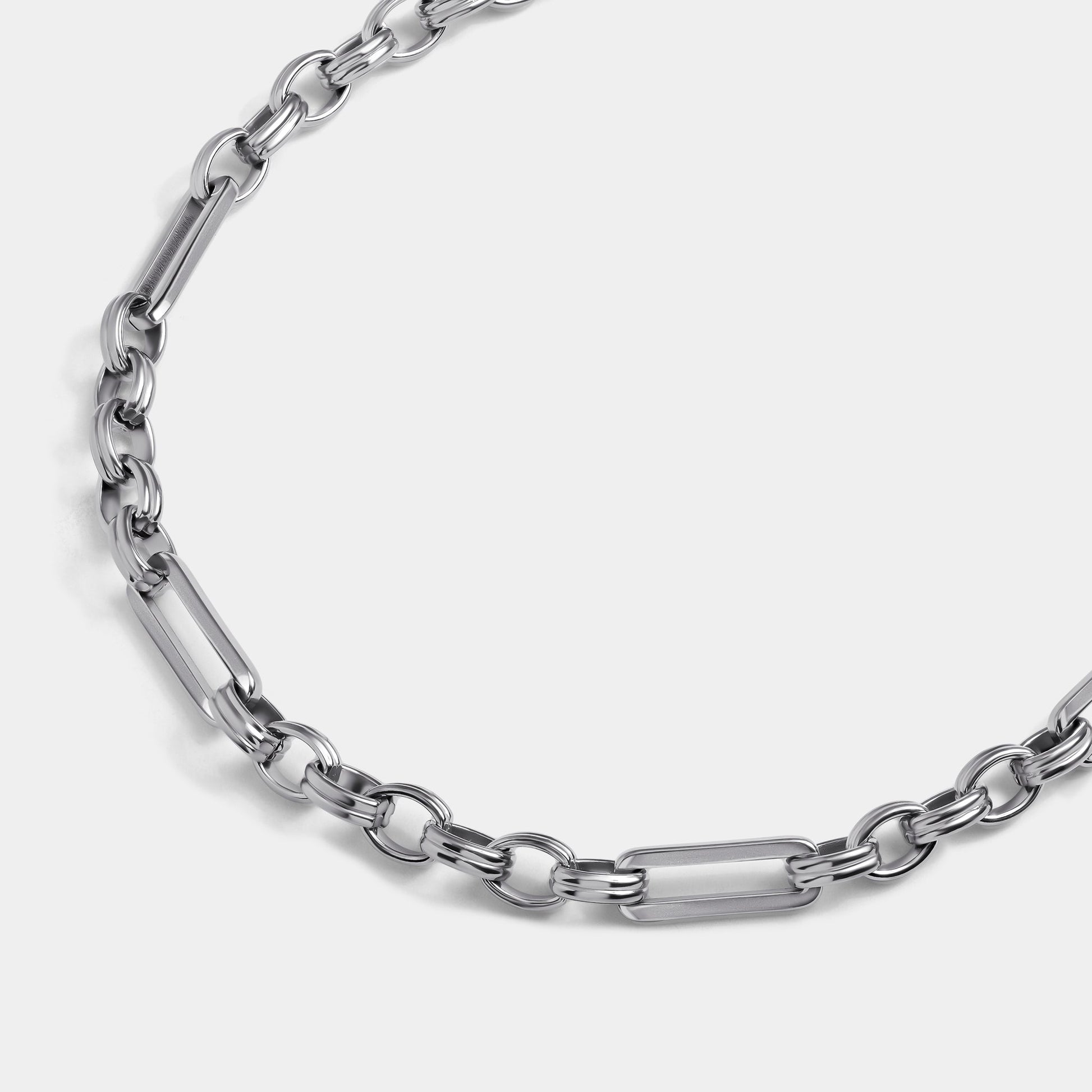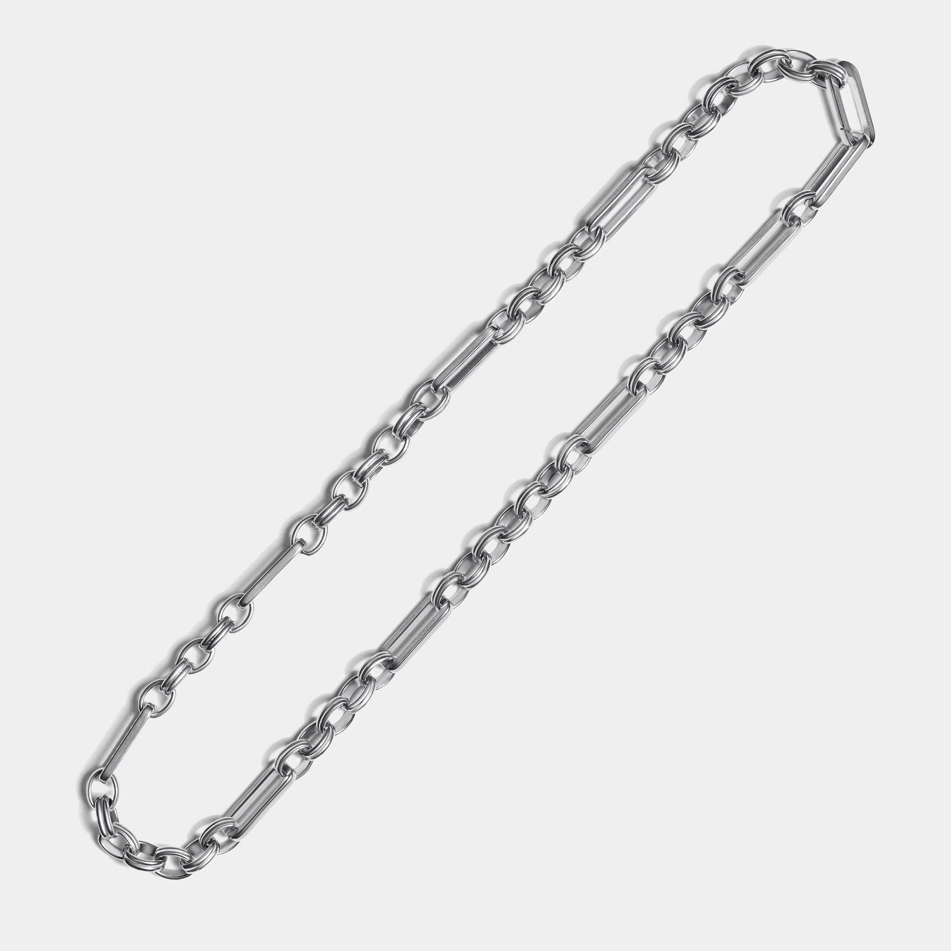 Crafted from silver plated stainless steel, our Women's Catena Necklace Silver keeps things casual making it an easy addition to your wardrobe. Features rectangular links and a discrete hinge lobster clasp designed right into one of the links. This unique hinge clasp allows for easy application and a seamless look. This timeless chain necklace is the perfect addition to your collection that will definitely elevate your style and make you stand out.