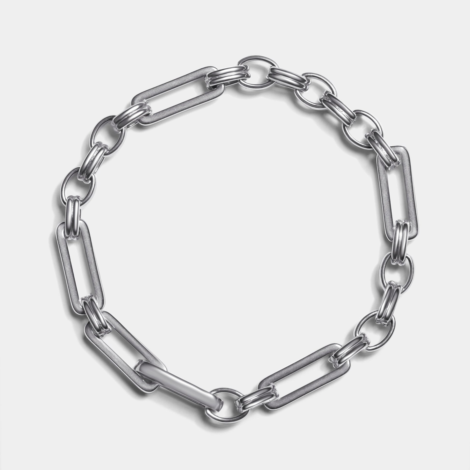 Crafted from 925 Silver plated stainless steel, our Catena Bracelet keeps things casual making it an easy addition to your wrist on its own or as a stack. Features rectangular links and a discrete hinge lobster clasp designed right into one of the links. This unique hinge clasp allows for easy application and a seamless look. This timeless chain bracelet is the perfect addition to your collection that will definitely elevate your style and make you stand out.