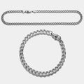 Crafted from stainless steel or 18k gold plated stainless steel, our Cuban Chain Link Bundle Silver keeps things casual featuring connected sleek links making it an easy addition to your wrist on its own or as a stack. This timeless chain link design is the perfect addition to your collection that will definitely elevate your style and make you stand out.