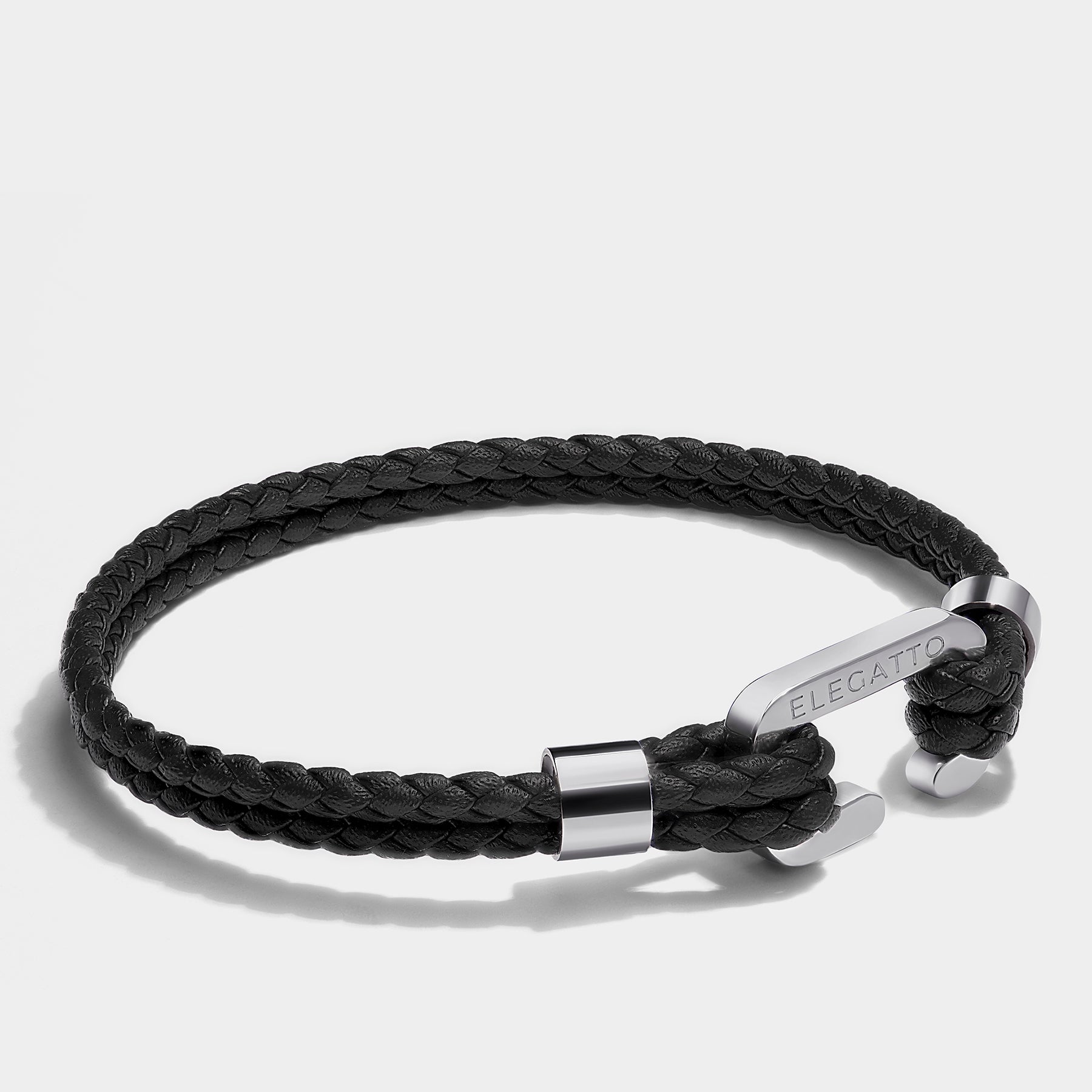 Available in four sizes. Also offered in braided Helix Navy Blue, Helix Red, and Helix Vintage leather color variations. Each bracelet comes protected in a soft velvet jewelry pouch, with a quality card, and presented in the original Elegatto gift box.