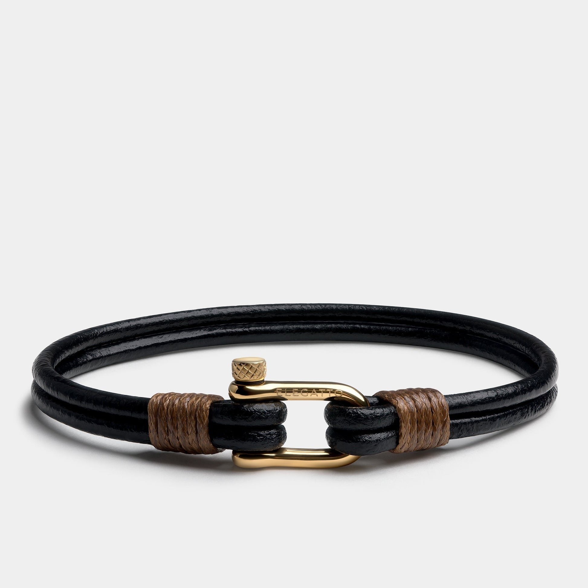 This is minimalist men's leather jewelry at its finest. The double black leather strands secured by contrasting brown thread give a distinct classic vintage look. Looks impressive alone or layered with any of our cuff bracelets.