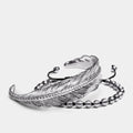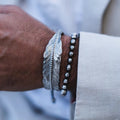Feather Silver bracelets are handcrafted in 316L marine grade stainless steel, which is sterling silver plated and intricately etched for both texture and definition.