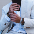 Both bracelets complement each other handsomely, both comfortable on the wrist and easily adjustable. The perfect minimalist pair can be worn together or alone.