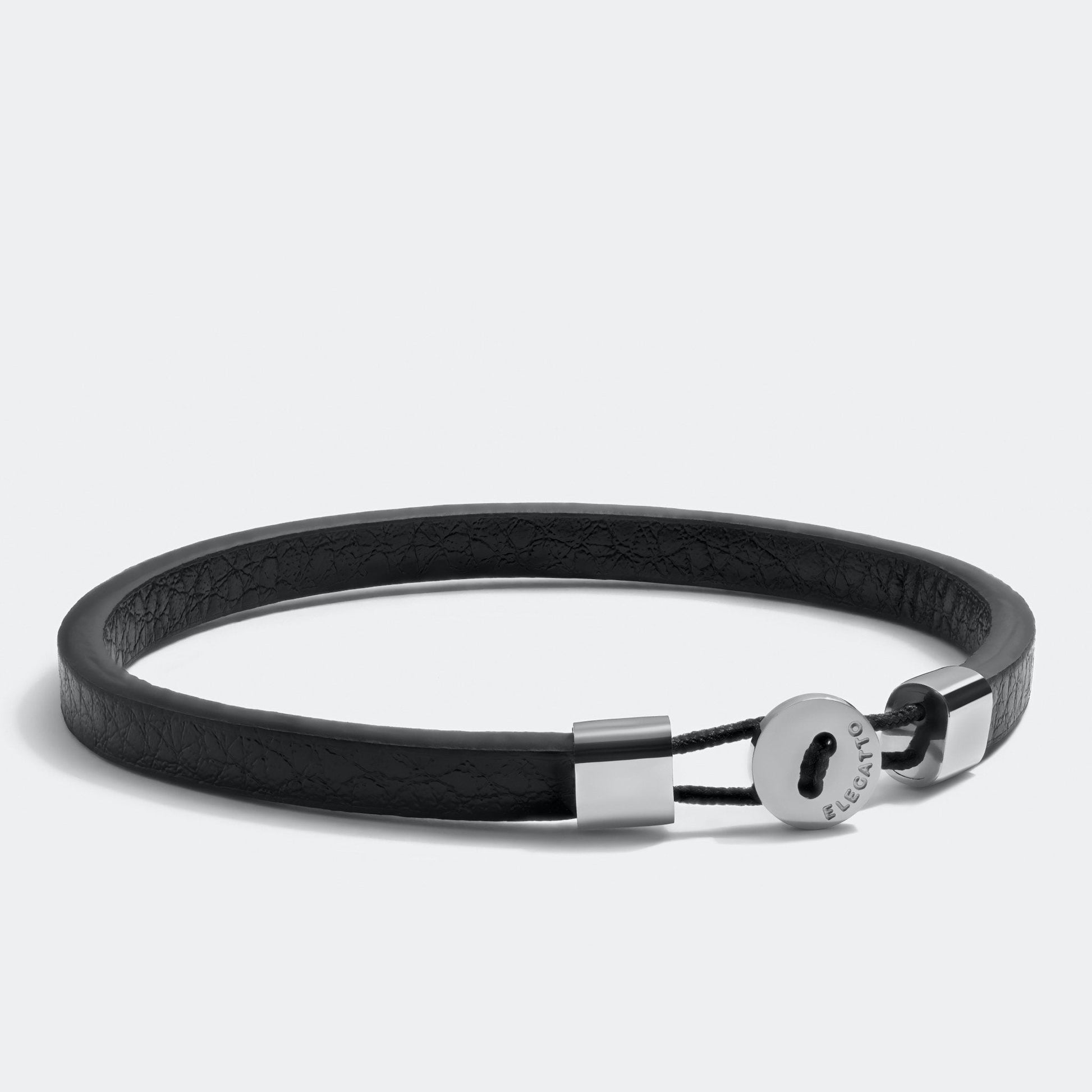The Juno bracelet is crafted from full-grain leather with a simple sterling silver plated closure and matching crimps. This frictionless band is simple, pared-down minimalism at its best.