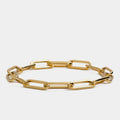 Crafted from 18k gold plated stainless steel, our Women's Paperclip Bracelet Gold features rectangular links and a discrete hinge lobster clasp designed right into one of the links. This unique hinge clasp allows for easy application and a seamless look. Simple yet on trend, you can wear it on its own for the ultimate minimalist look or layered with other bracelets to create your own unique style.
