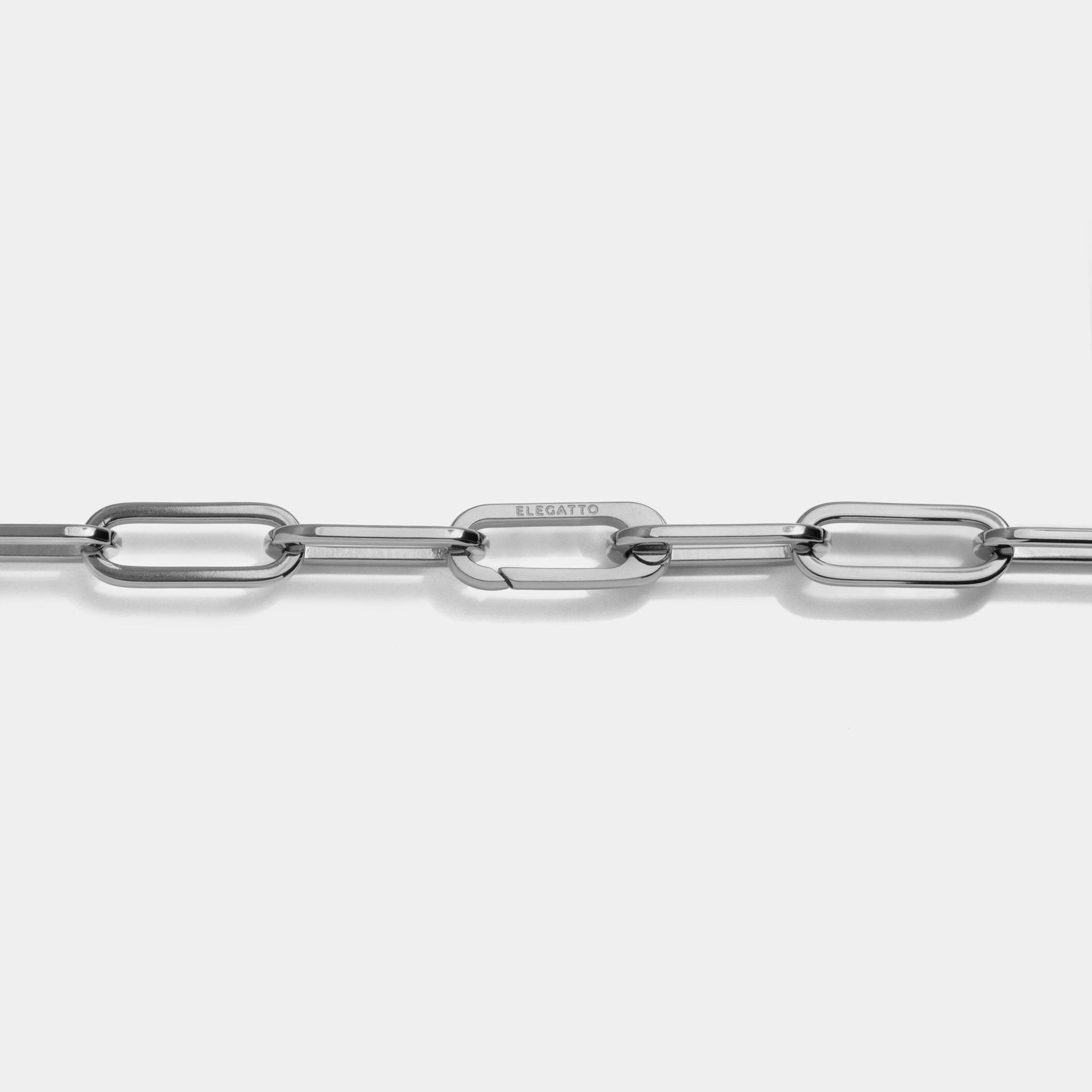 Crafted from silver plated stainless steel, our Women's Paperclip Necklace Silver features rectangular links and a discrete hinge lobster clasp designed right into one of the links. This unique hinge clasp allows for easy application and a seamless look. Simple yet on trend, you can wear it on its own for the ultimate minimalist look or layered with other necklaces to create your own unique style.