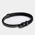 Braided leather and black-plated stainless steel blend impeccably to bring you Elegatto's Signature black bracelet. The full-grain black leather offsets the polished finish with style, with an edgy yet sophisticated simple hook closure.