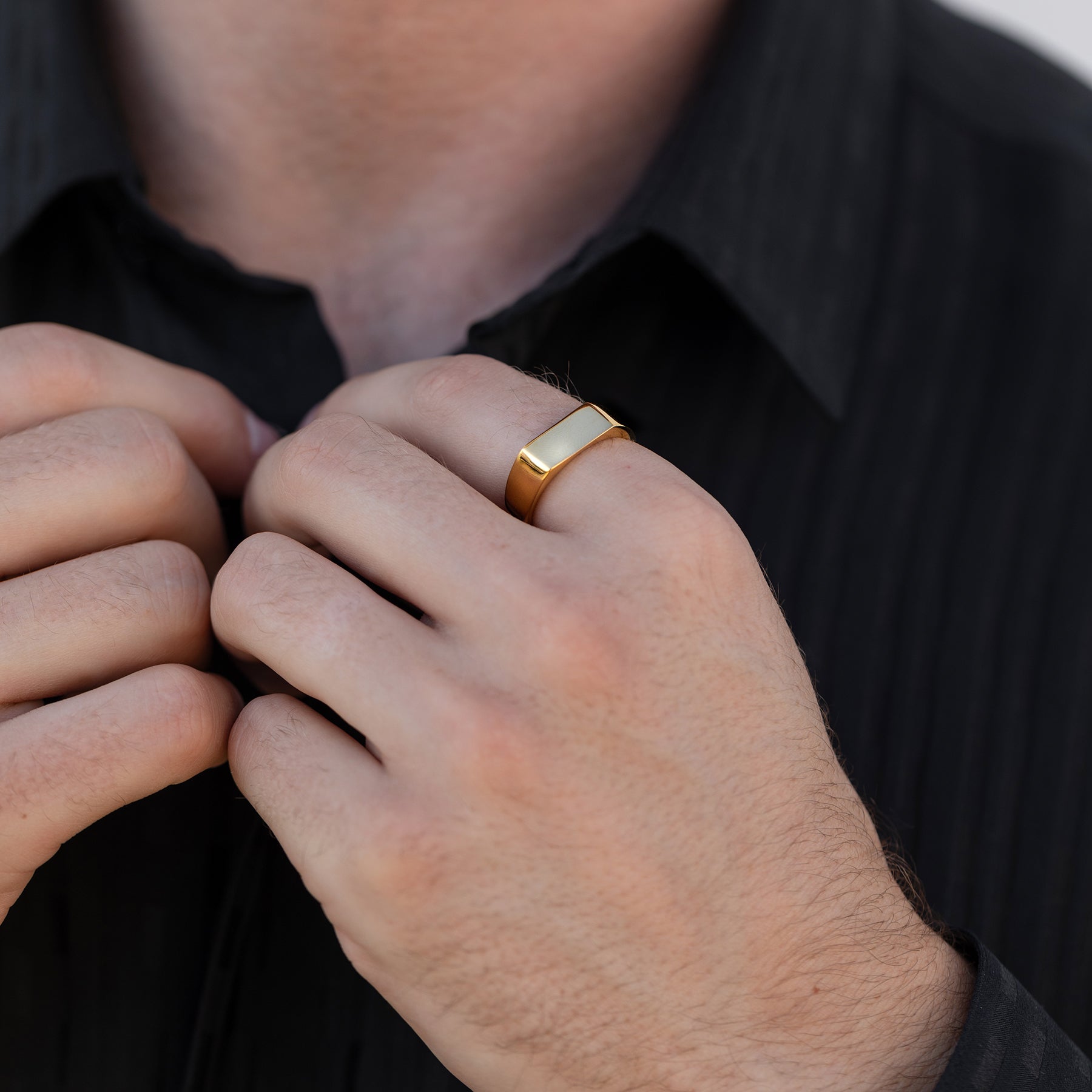 The always classic Signet Ring Gold is the ultimate staple accessory. Featuring tapered edges and a perfectly leveled top, our Signet Ring is then finished with a polished finish on the exterior and a brushed finish on the interior. Available in extensive sizing.