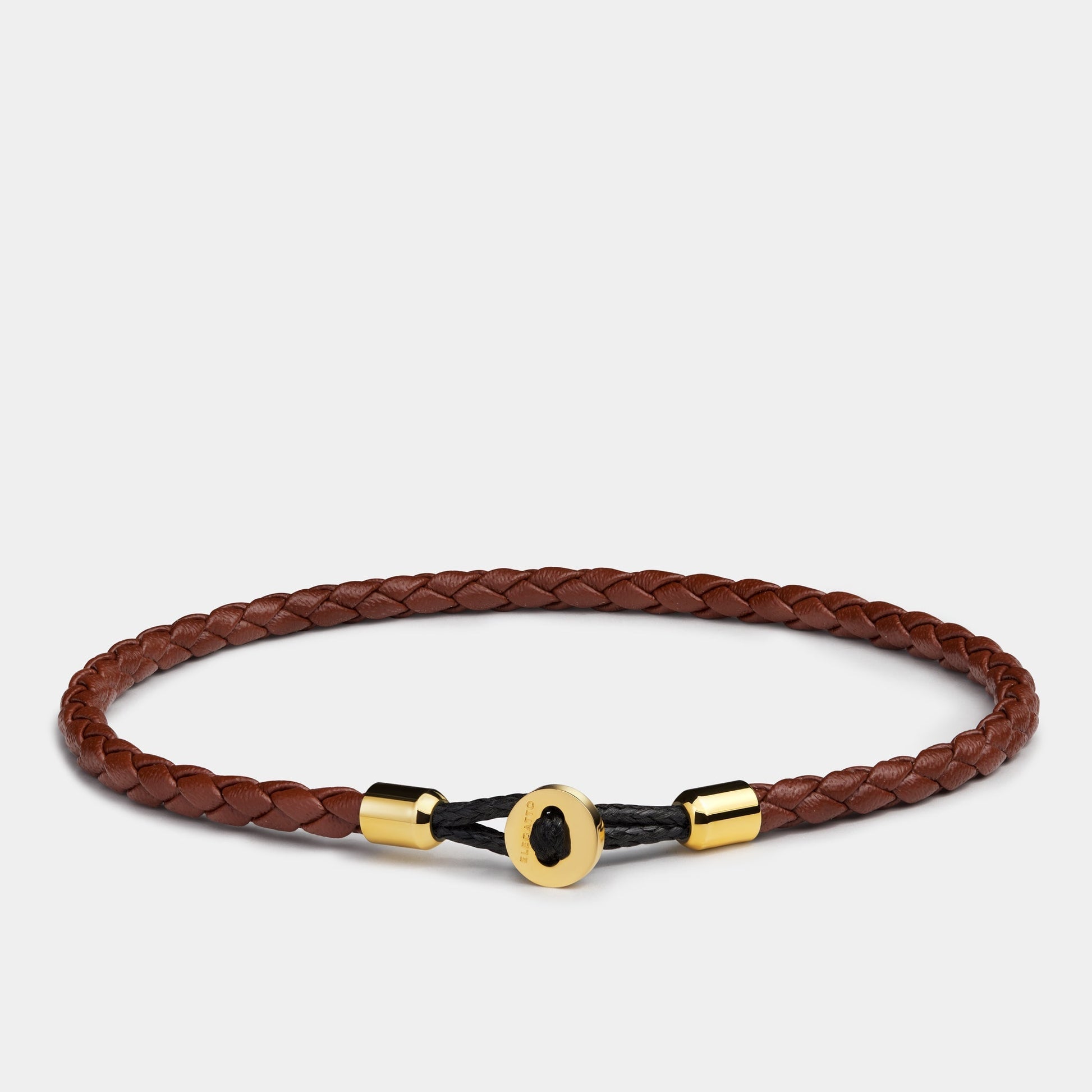 The Uno Brown Gold bracelet is crafted from full-grain braided leather with a simple plated closure and matching crimps. This frictionless band is simple, pared-down minimalism at its best.