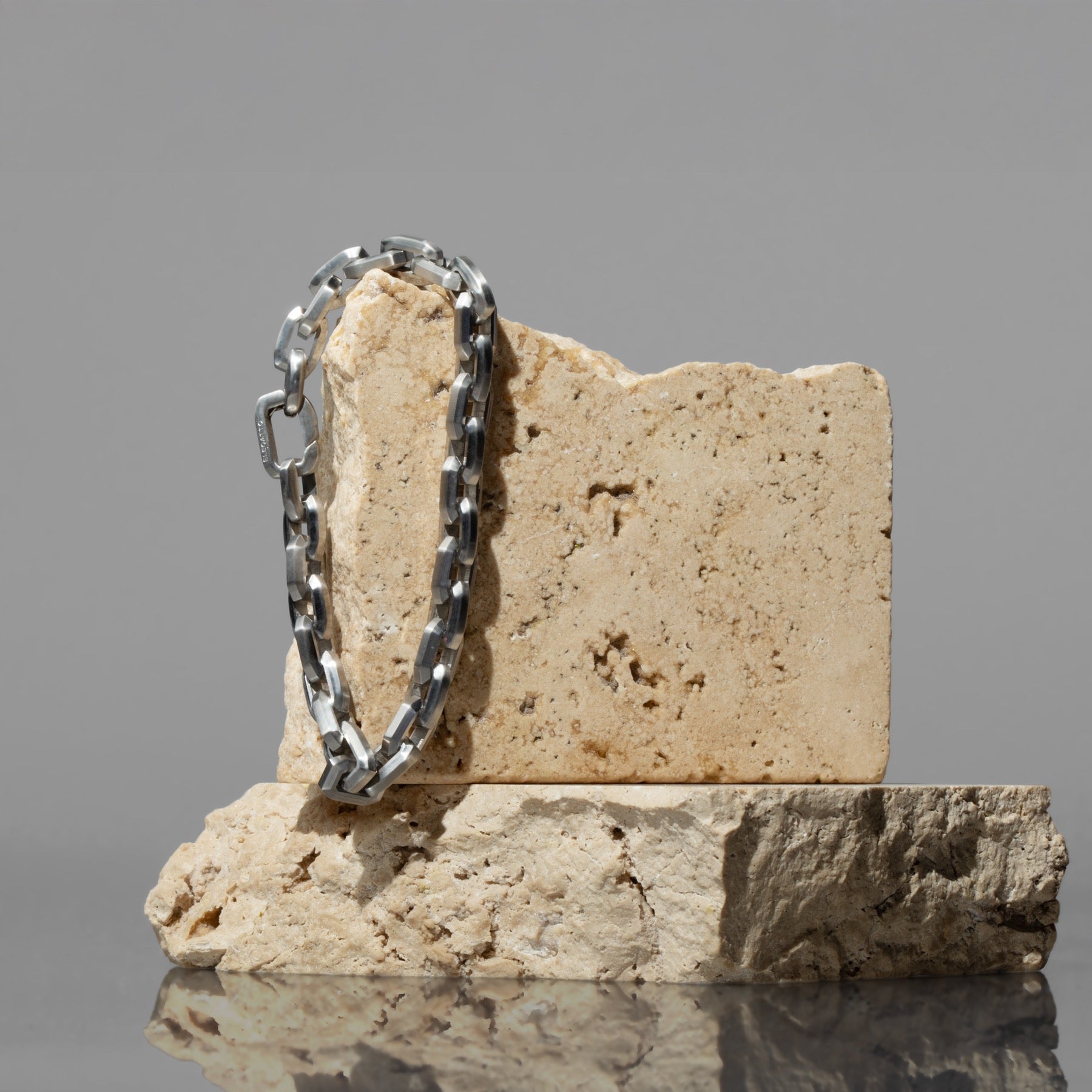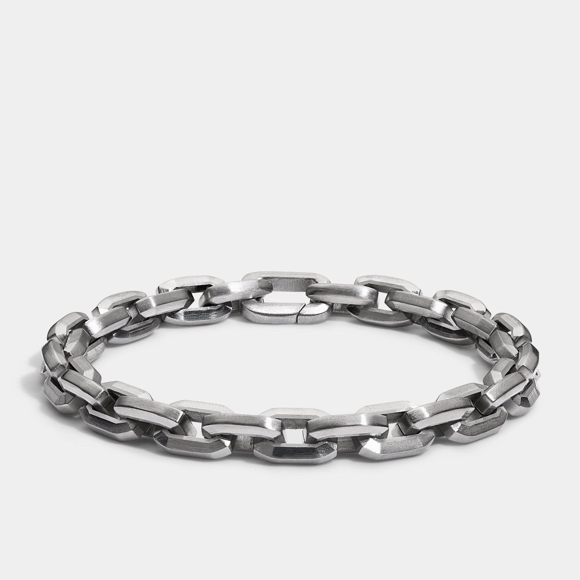 The Vega Link Chain bracelet takes premium stainless steel to new heights with a matte brushed finish that’s rugged yet undeniably sleek. Oversized links bring strength and versatility, making it the ultimate upgrade for your casual threads or sharpest suit.