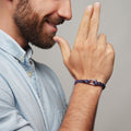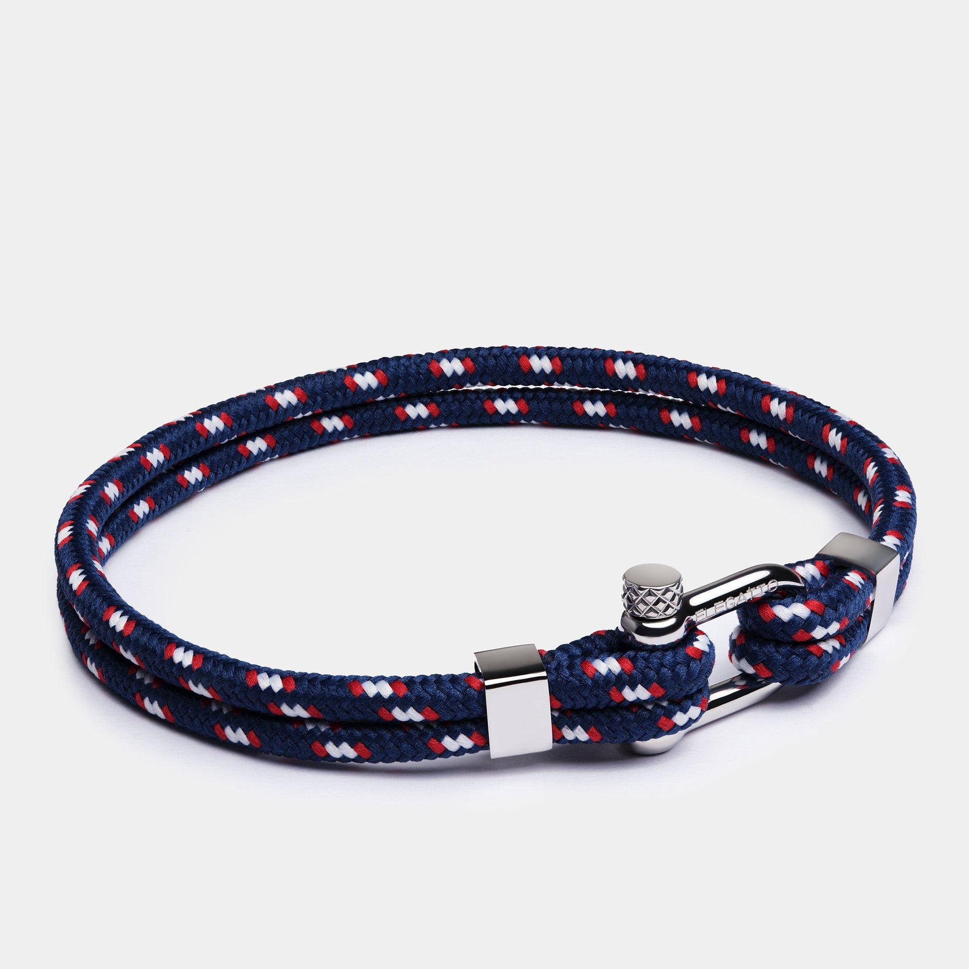 The clean look of the red and white flecks against the navy cord is complete alone or would compliment any of our leather bracelet collection. The Viva bracelet is admirable in its simplicity.
